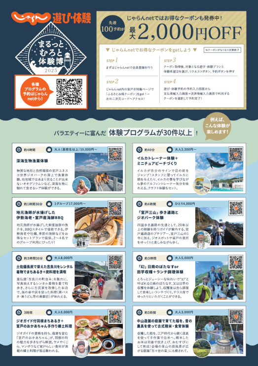 室戸の魅力を実感できる体験プログラムを集めた「まるっとむろと体験博」。