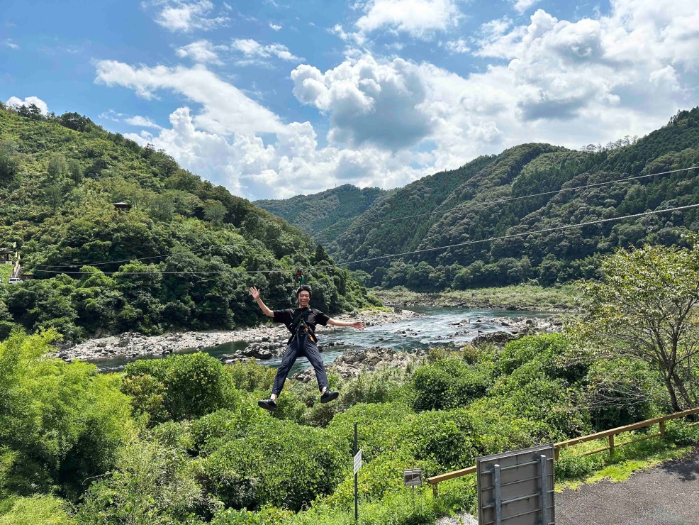 食後は、早速旅のハイライトのひとつ、四万十川の絶景を空中から見渡すジップラインに挑戦!最初にレクチャーをしっかり受けるので、初めての方でも安心して楽しめます☺️