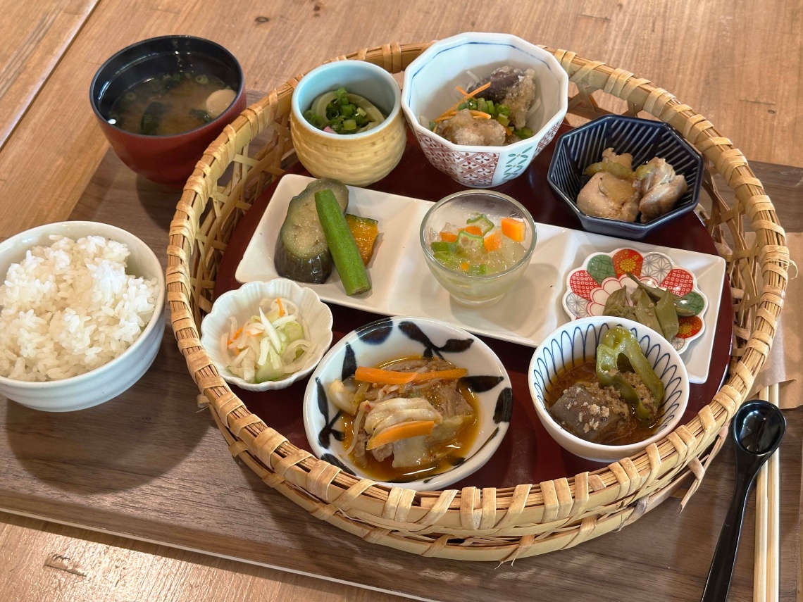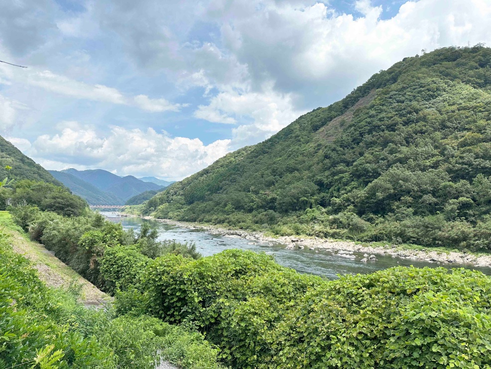 眼下に広がる雄大な四万十川の景色を眺めながら、旬の食材をふんだんに使った「とおわ四季の里ご膳『夏』」をいただきました。四万十鶏の塩麹焼きや四万十緑茶うどんなど、地元の味がぎゅっと詰まった料理は、目に映る景色とともに体にやさしく染み渡りました。