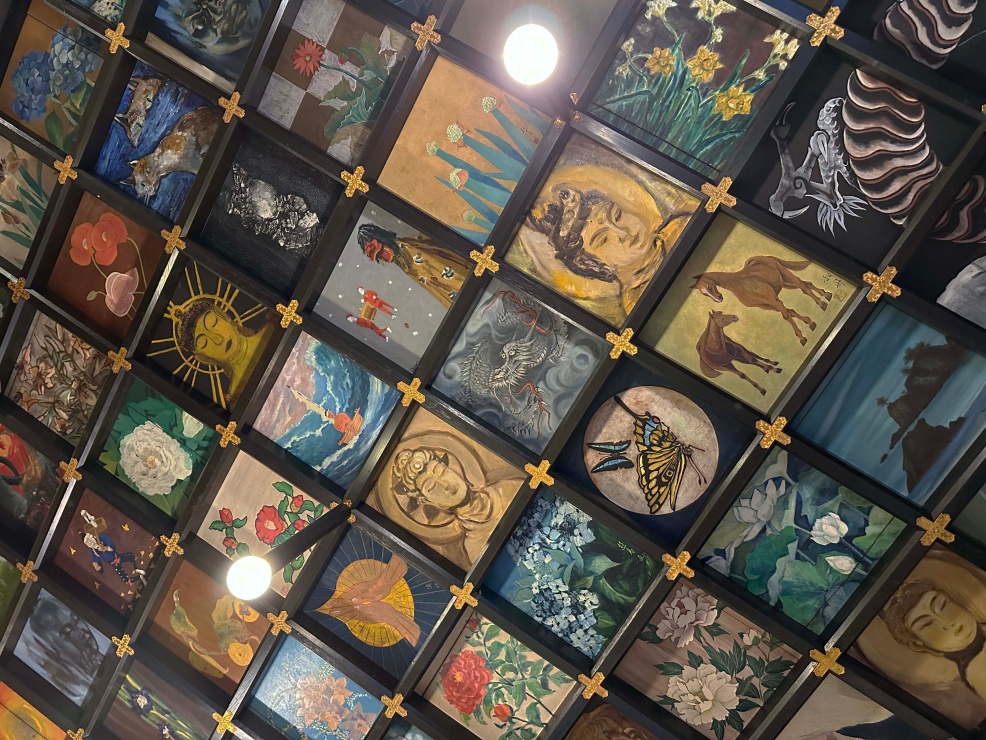 1日目の締めくくりは、四万十町にある四国八十八ヶ所霊場第三十七番札所、岩本寺へ。本堂の天井を彩る575枚もの絵画や、境内いっぱいに広がる世界で活躍するアーティスト「SHETA」のポップアートは、まさに「日本一アートなお寺」と称される所以です。