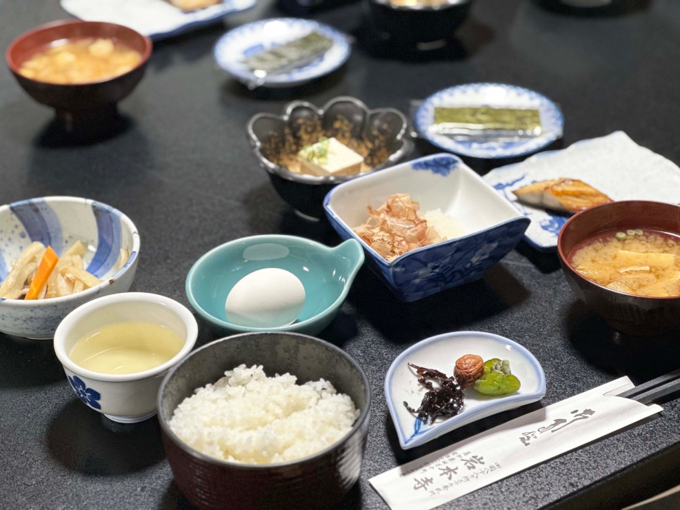 お勤めの後にいただいた朝食は、精進料理かと思いきや、四万十川の恵みを感じるボリュームたっぷりの食事で、大満足でした。