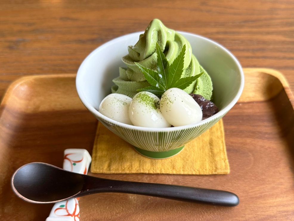 そして、その名とは裏腹に、食べ応えたっぷりの「こんまいパフェ」!「こんまい」とは土佐弁で「小さい」という意味ですが、その名とは裏腹に、抹茶ソフトクリームがドドンと鎮座する食べ応えたっぷりの大満足パフェでした!手作り餡と、もちもちの白玉が添えられた和風パフェは、抹茶のほろ苦さと餡の優しい甘さが絶妙なバランス。四万十の美しい自然を感じながらいただく甘味は、旅の疲れを癒し、心ゆくまで満たされる最高の締めくくりとなりました。