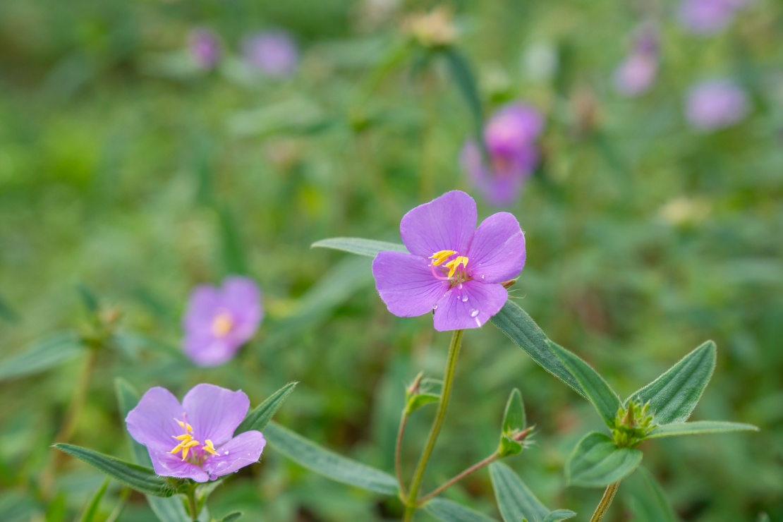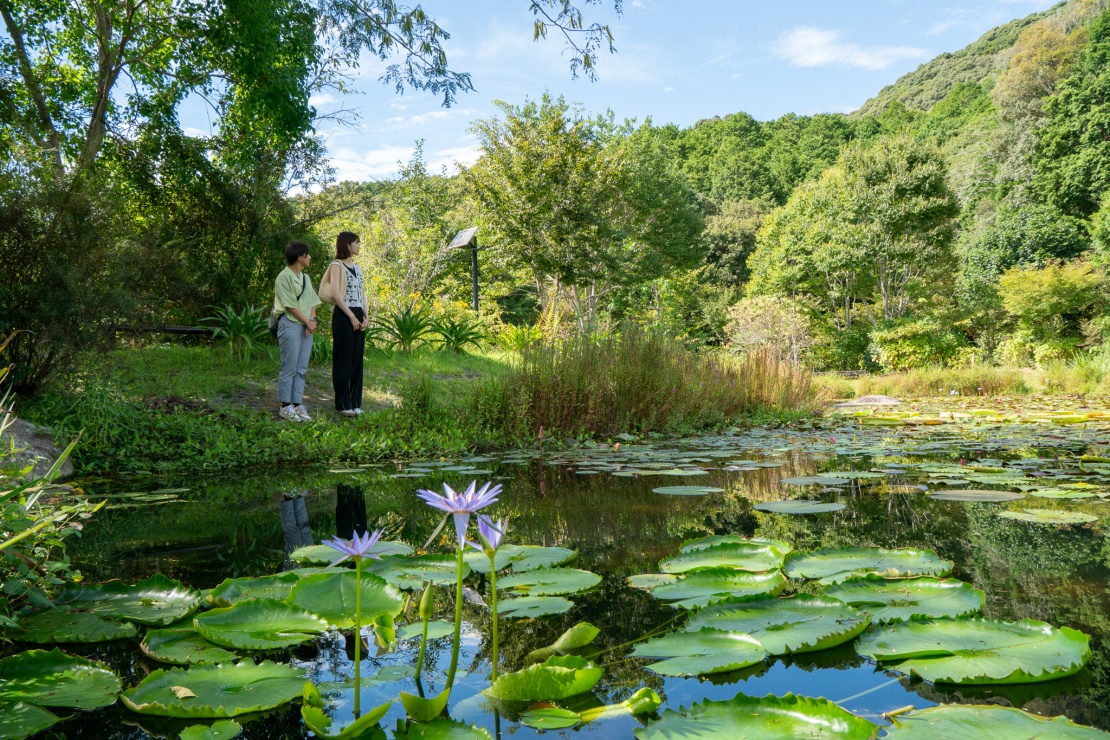 ヒメノボタンは、高知県の絶滅危惧種。公園を管理する地元の方々が毎年、種を採種して育てており、夏の終わりから秋にかけてが見頃です。そのほかにも、春にはスイレンが咲き始め、夏はアジサイ、秋はオミナエシやリンドウ、冬はバイカオウレンやフクジュソウなど一年中花が楽しめます。