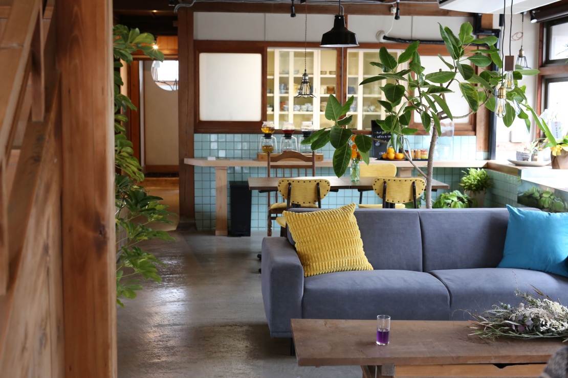 秘境で土佐ジロー体験という強烈な感動を味わった後は、安芸市からさらに東へ車で30分ほどの奈半利町にあるゲストハウス「junos(ユノス)」に向かいました。junosは奈半利駅からも近く、海を間近に感じられる絶好のロケーション。築80年以上の旧旅館を、元の意匠をできるだけ残してリノベーションした趣のある佇まいで、レトロな雰囲気とモダンなデザインが美しく調和した心地よい空間が魅力です。