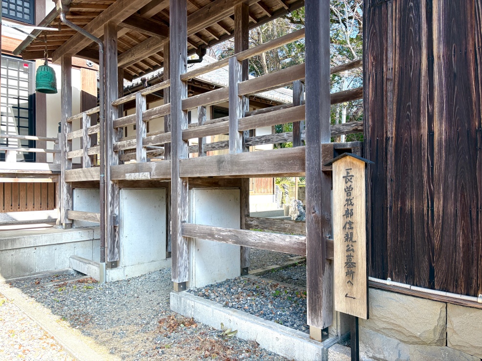 境内奥の墓所には、元親公の長男・信親公の墓が建立されています。信親公は天正14年(1586年)、九州の戸次川(へつぎがわ)の戦いで戦死。将来を嘱望された嫡男の死は、父である元親公の後半生の歩みにも大きな影響を与えたと伝えられています。