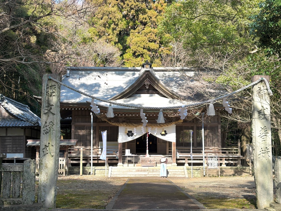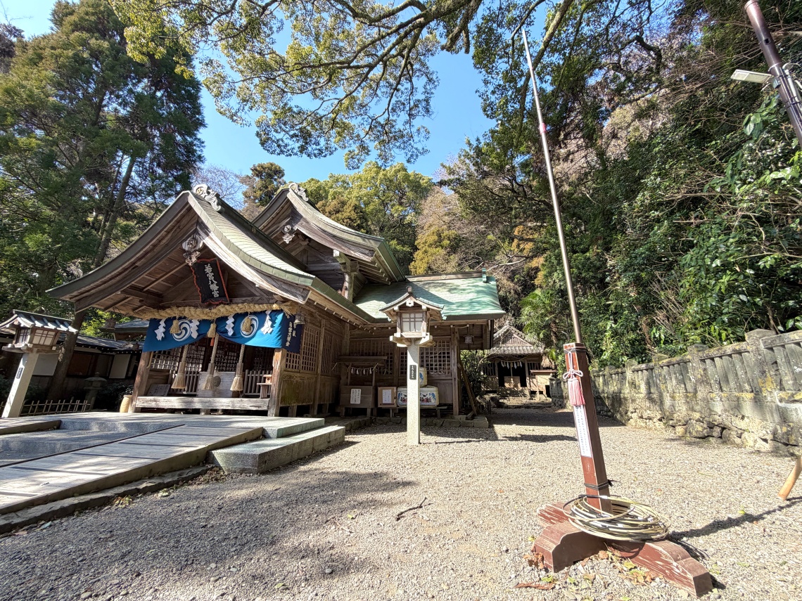 高知中心部から車を南へ走らせること約20分。かつて元親公が初陣の軍議を開いたとされる若宮八幡宮の駐車場に車を停めます。