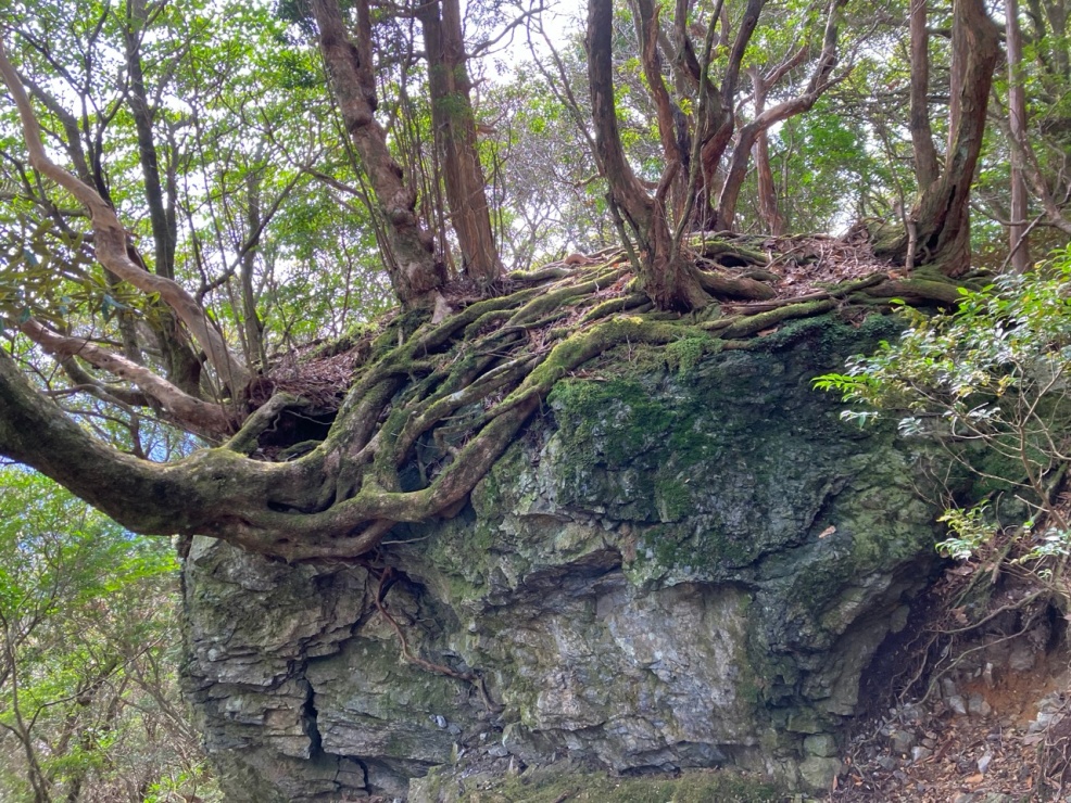 この日はのんびりと2時間弱ほど、森林浴を楽しみながらトレッキングを堪能。頂上や「風の谷」からは、霞の向こうに太平洋を望むことができ、一豊公が辿った海路に思いを馳せるひとときとなりました。ルート上には妙体岩を横から眺められるスポットもあり、その厚みと迫力には改めて圧倒されます。知識として知るだけでなく、ぜひ実際に歩いてそのスケール感を体感していただきたい場所です。