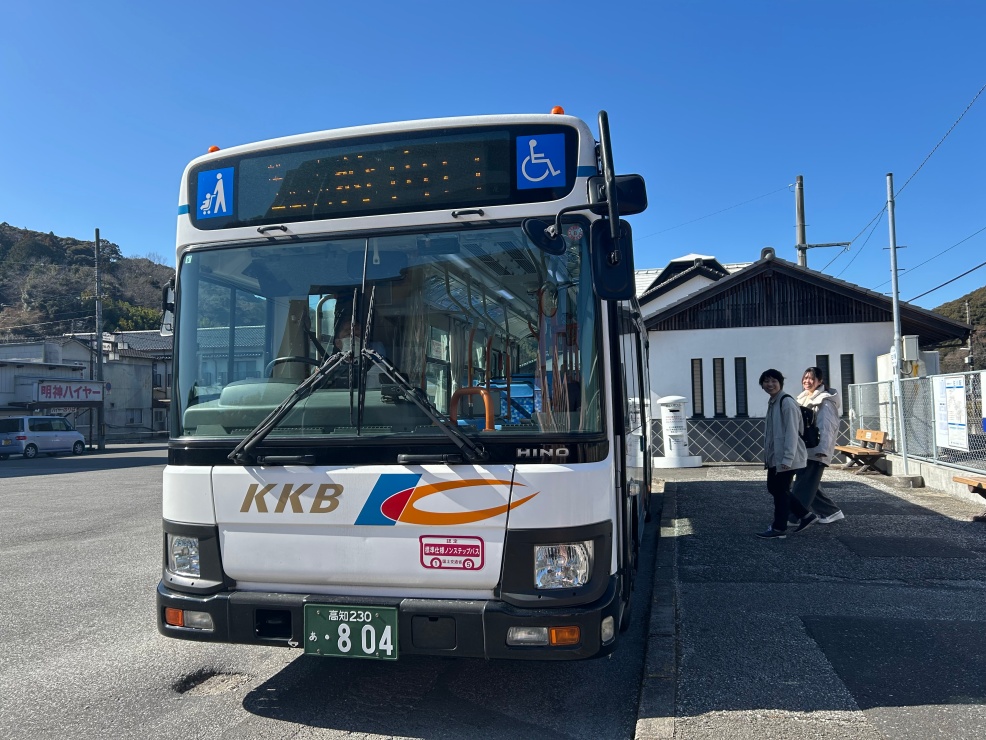 駅のすぐ近くの佐川駅バス停から黒岩観光バス(広域線狩山口行き)で12:05に出発。
