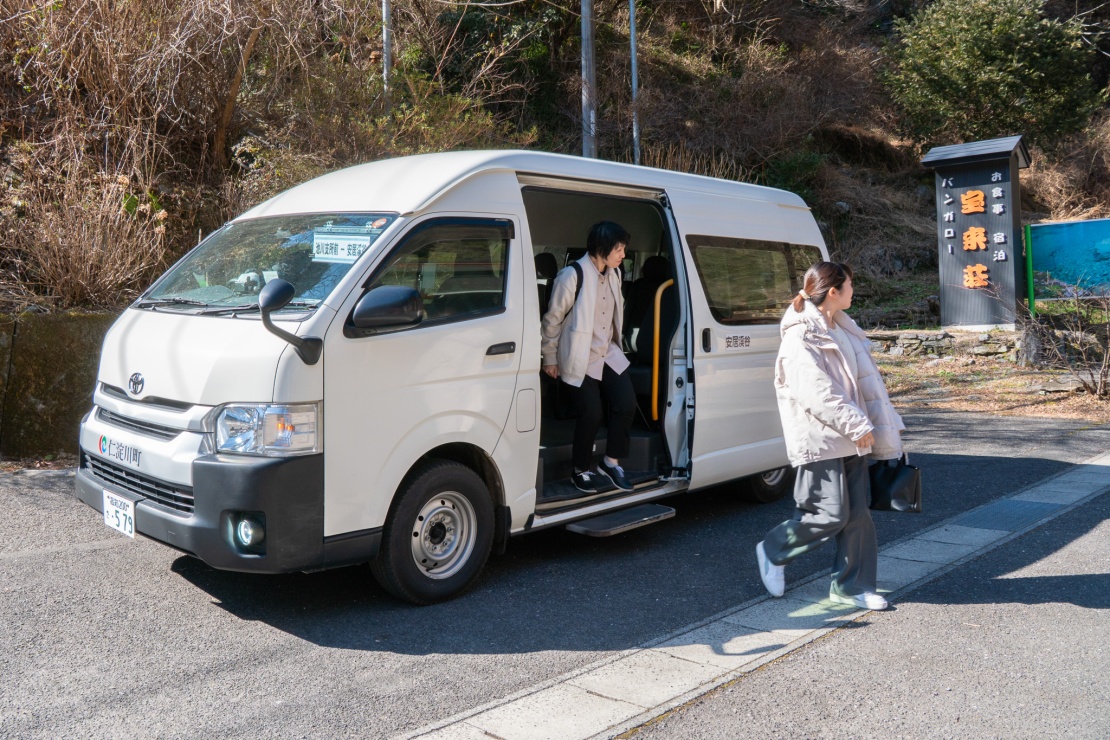 安居渓谷から狩山口バス停までの復路は、タクシー移動がおすすめ。