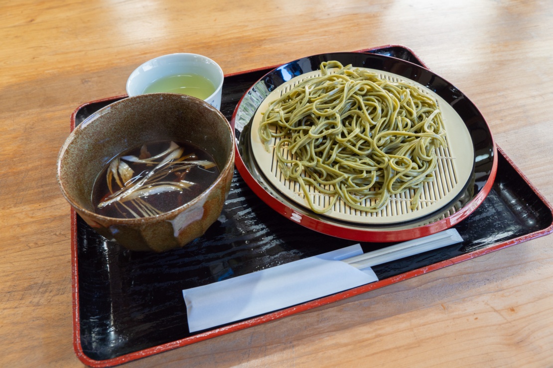 まずは、腹ごしらえ。宝来荘でランチ。いただいたのはこだわりの鶏の出汁が効いた茶そば!