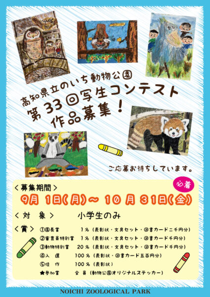 第33回 のいち動物公園 写生コンテスト作品募集 9月1日(月)~10月31日(金)