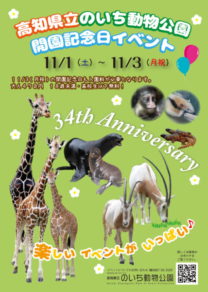 高知県立のいち動物公園 開園記念日イベント 2025 11月1日(土)~11月3日(月)