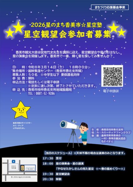 2026星のまち香美市★星空塾 【星空観望会参加者募集】