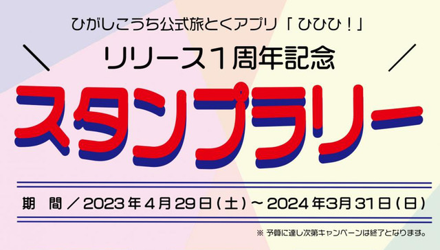ひがしこうち公式 旅とくアプリ「ひひひ!」1周年記念スタンプラリー