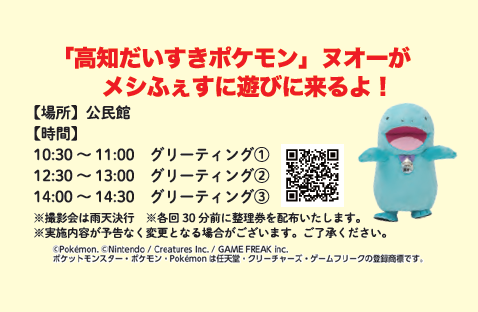 黒潮が流れる海や山々、原風景の残る里山と言った多彩な魅力を持つ高知県を、ヌオーが様々な取り組みを通じて盛り上げていきます。