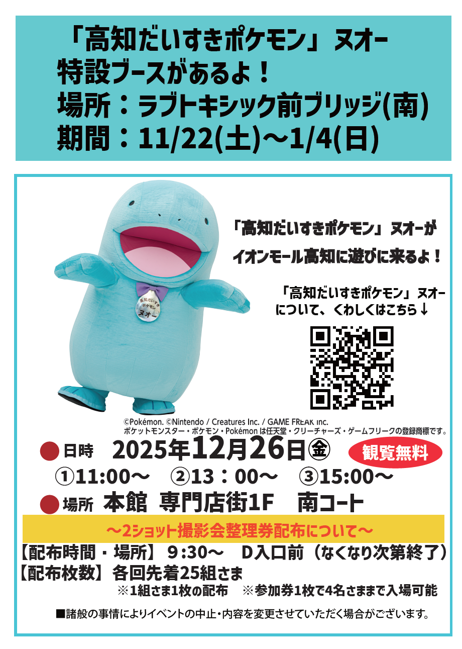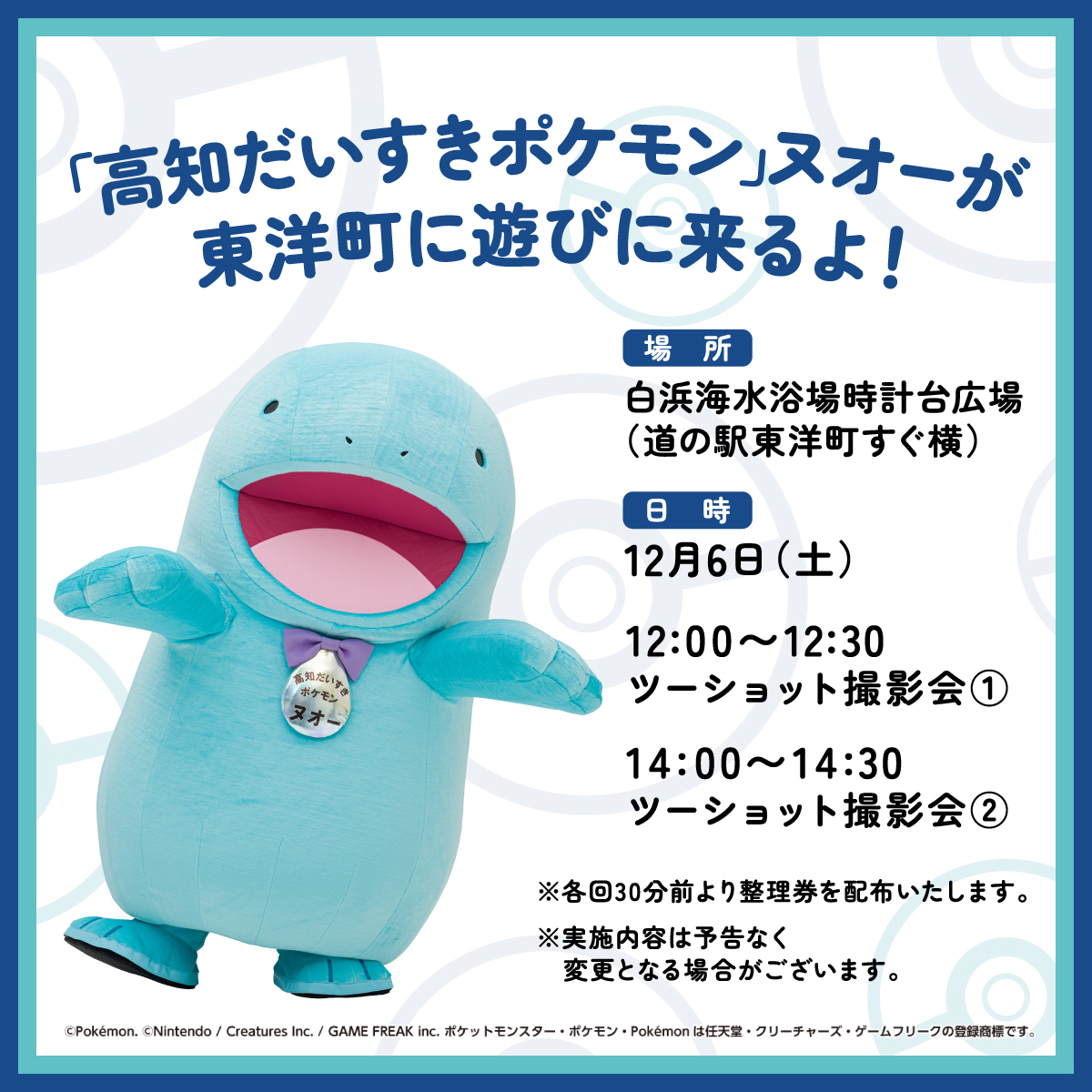 2024年11月、ヌオーが「高知だいすきポケモン」に任命されました。森林率全国1位の豊かな森が育む高知県の四万十川や仁淀川といった清流は、ヌオーがそこでのんびりと暮らしているかもしれないと思わせてくれます。