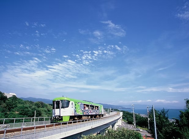 ごめん・なはり線は、南国市と奈半利町を結ぶ約40kmの路線で、自然豊かな風景が広がる中を走るローカル線です。特に海岸沿いの景色が美しく、1日1往復のオープンデッキ車両では太平洋からの潮風を受けながら列車の旅を楽しむことができます。このごめん・なはり線にて沿線の名産品であるフルーツを楽しんでもらえるのが、「ごめん・なはり線 フルーツ列車」。途中駅で乗車してくるフルーツを素晴らしい景色と共にお楽しみください。