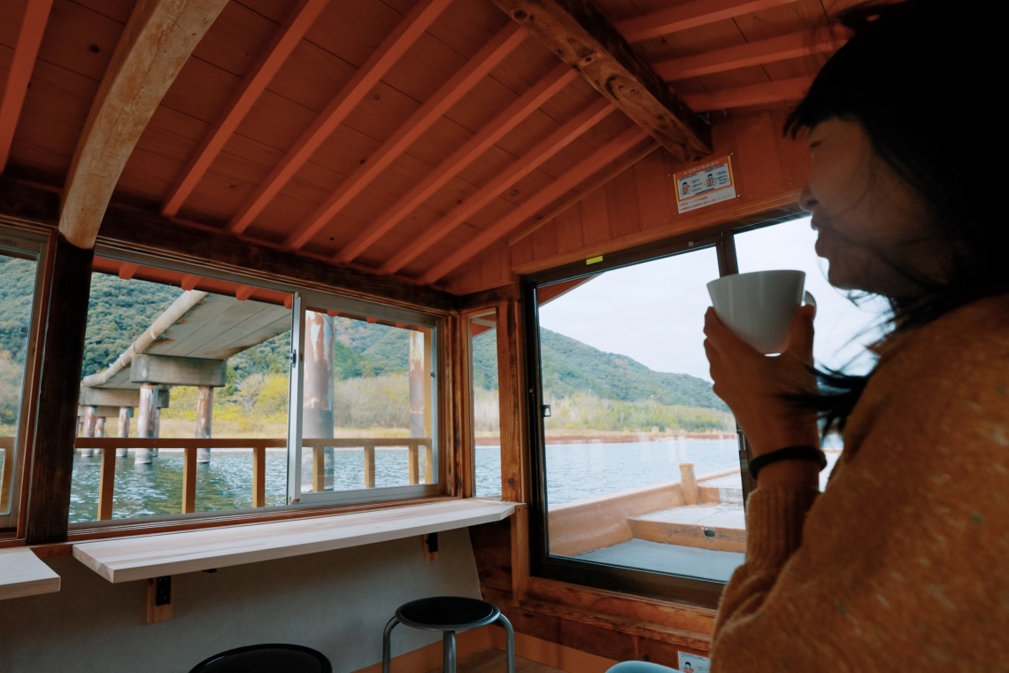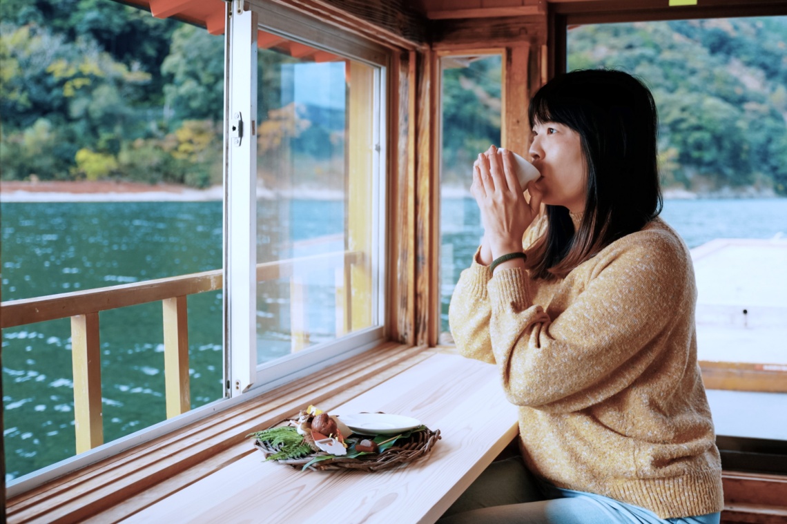 気持ちのいい朝や午後の憩いの時間に清流四万十川に浮かべた屋形船でのんびりとくつろぎながらコーヒーはいかがですか?その名も水上カフェ。炭を使って焙煎した四万十のご当地コーヒーに、青のりを練り込んだ地元おすすめのスイーツを添えてご提供いたします。運航は午前9時と午後3時の2回。午前の運航は四万十市中村から江川崎に行く四万十川バスに連絡しています。