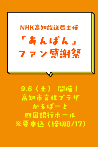 あんぱん 【終了しました】NHK高知放送局主催「あんぱん」ファン感謝祭9/6(土)開催!